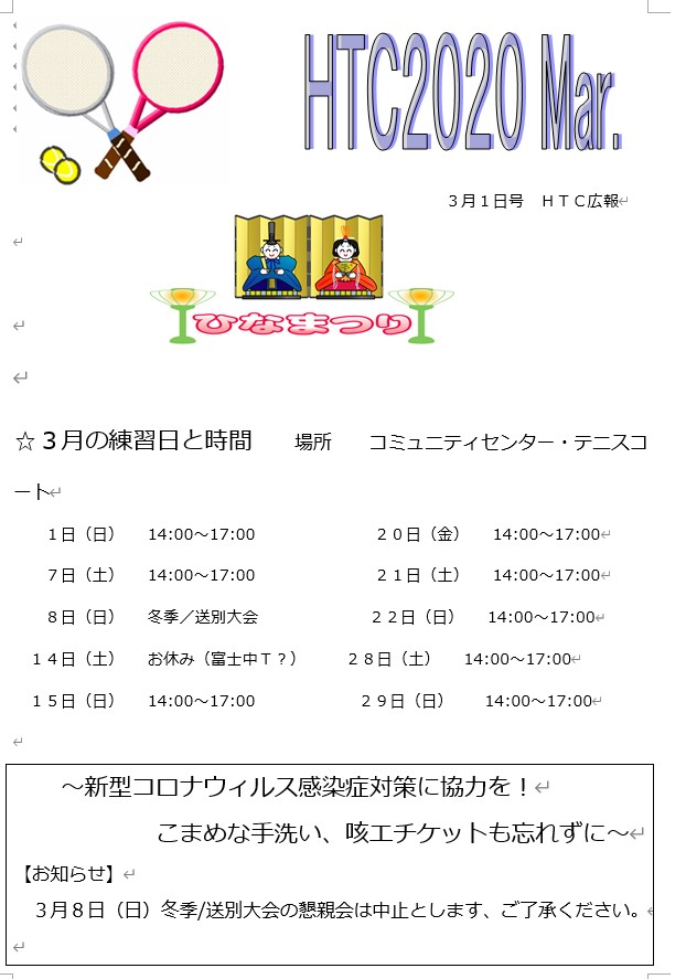 2020年3月8日 HTCの冬季ダブルス大会(送別大会)が開催されました。