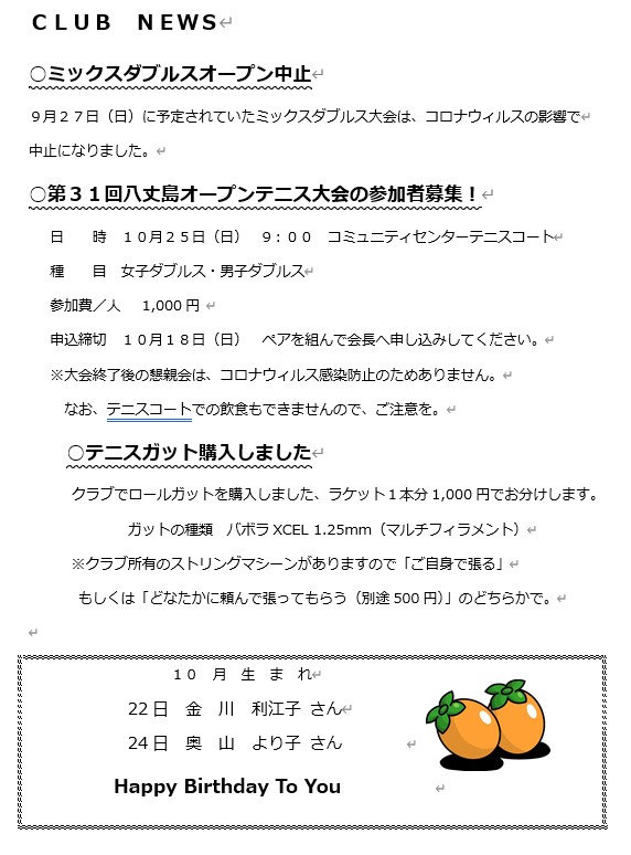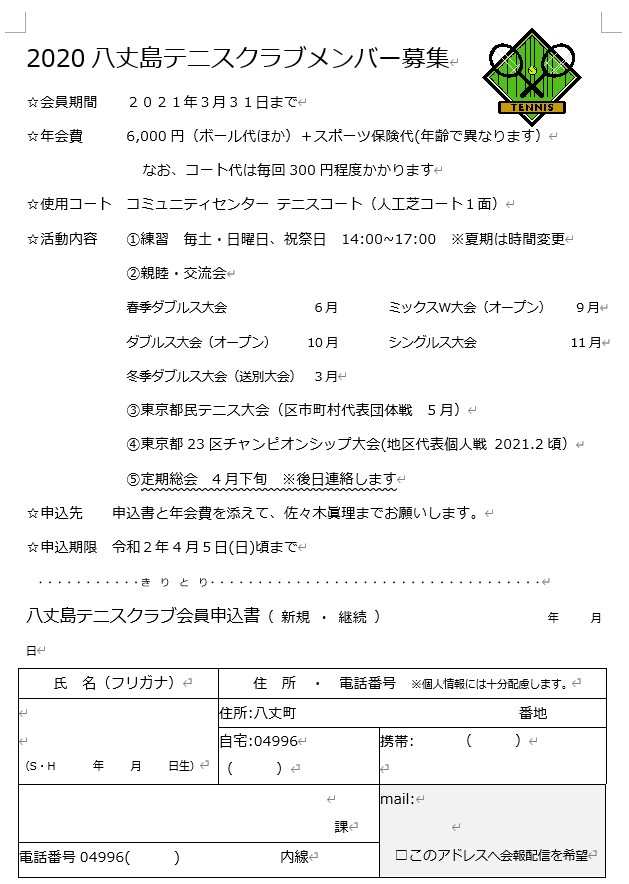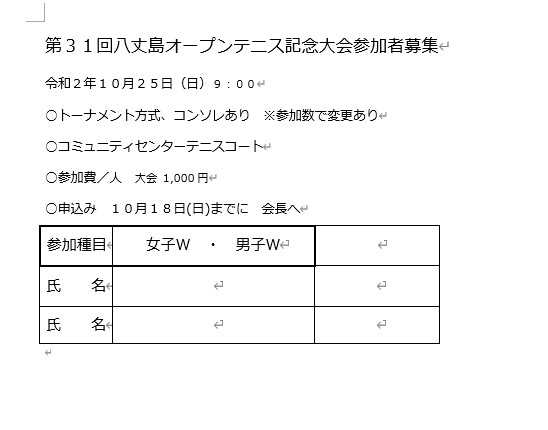 2020年10月25日 八丈島テニスクラブのオープン大会が開催されました。