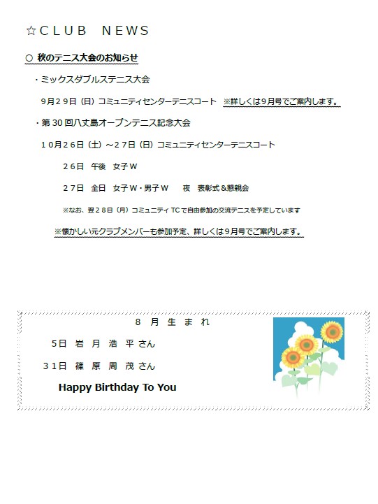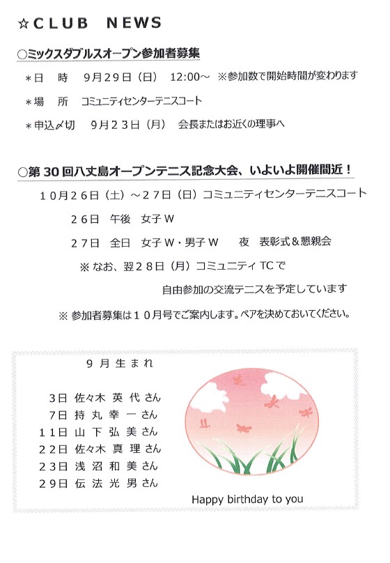 2019/9/29 天候が心配されるなか八丈島テニスクラブの