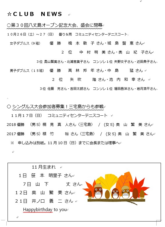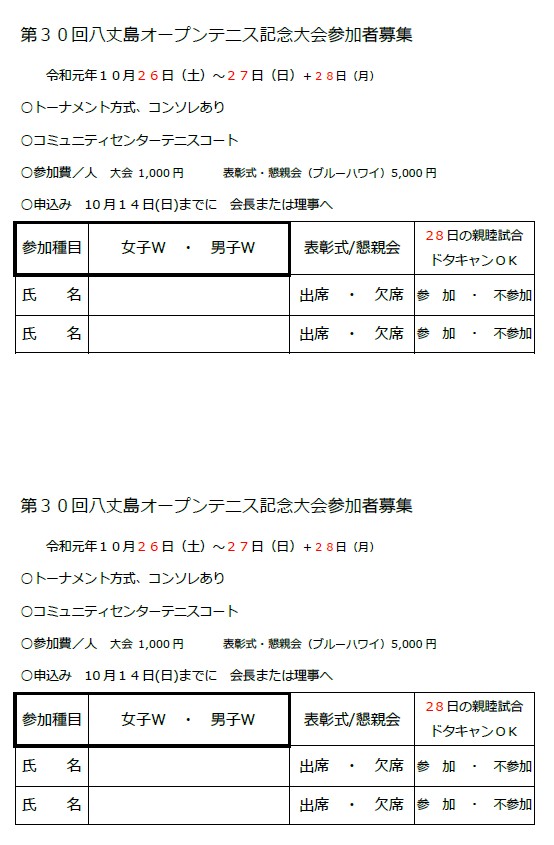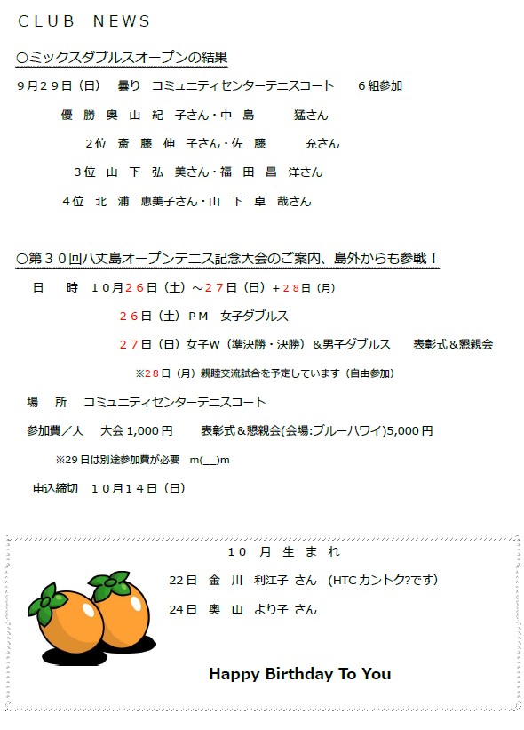 第30回の八丈島テニスクラブのオープン大会が開催されました。