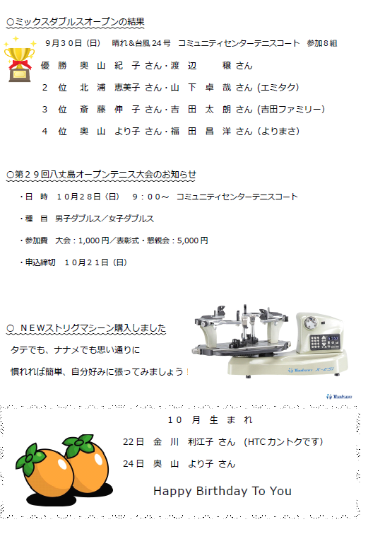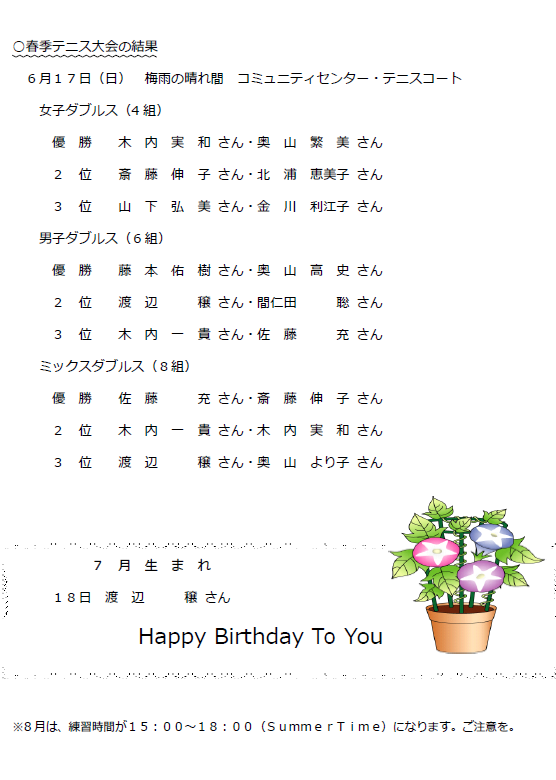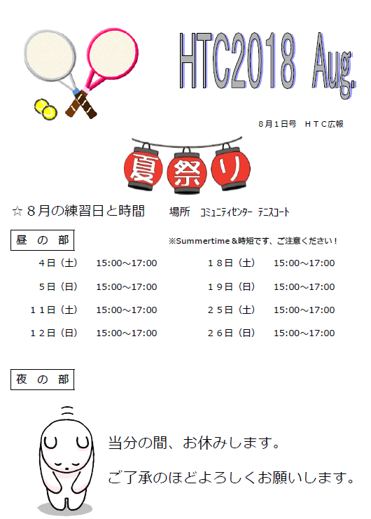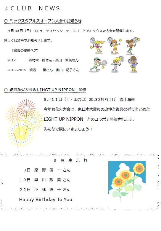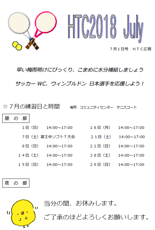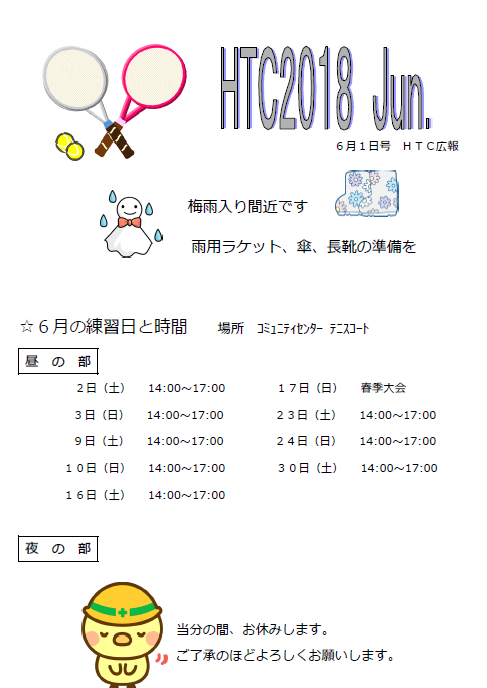 八丈島テニスクラブ(HTC)の2018年6月の会報です。