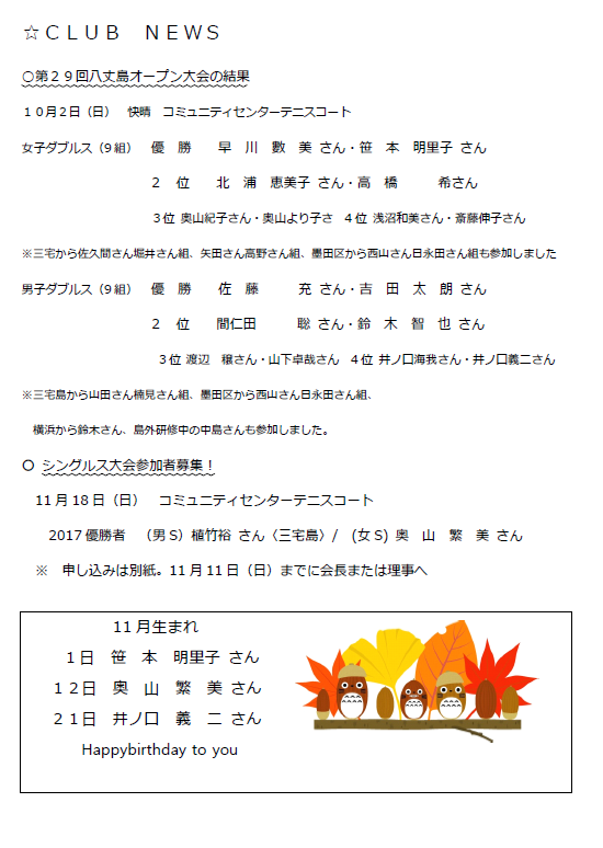 秋晴れのなか、八丈島テニスクラブのオープン大会が開催されました。