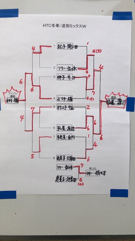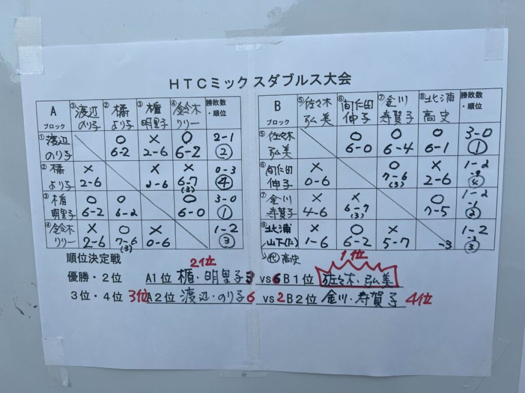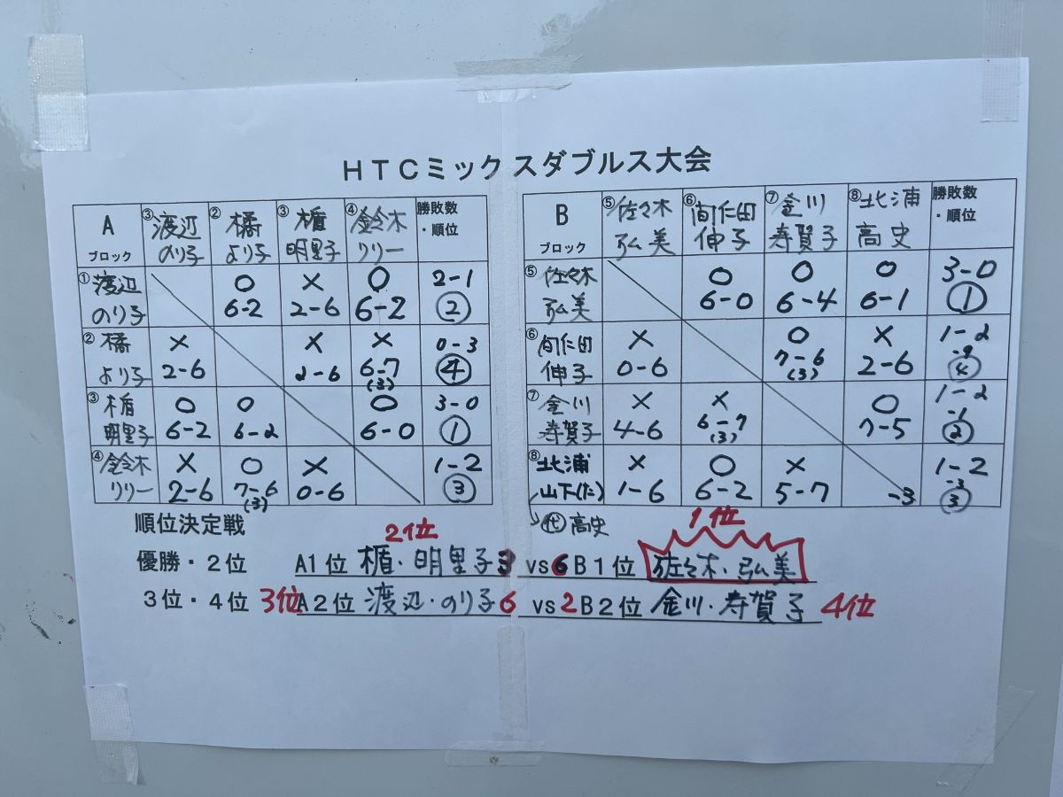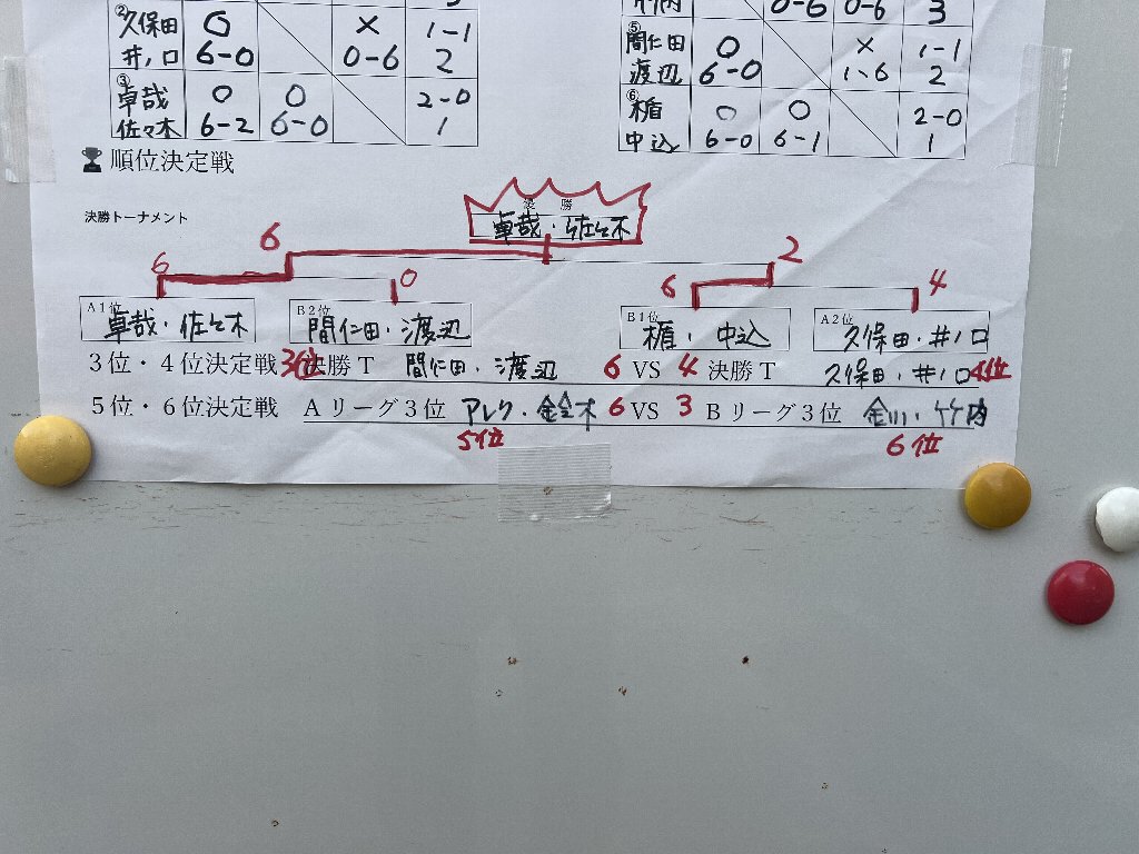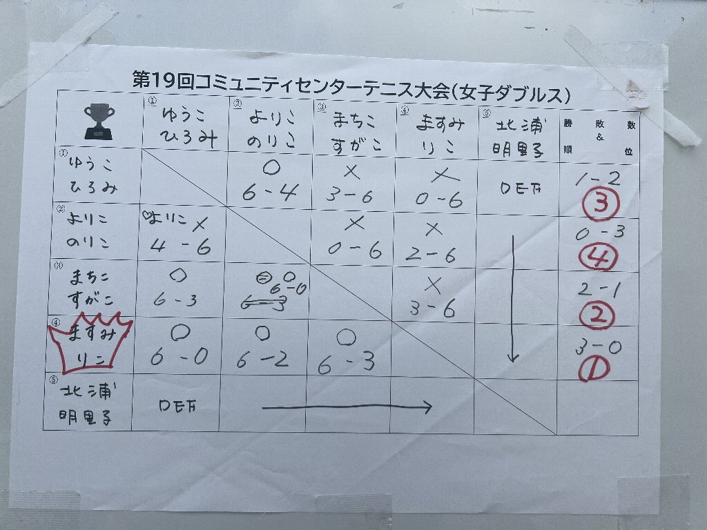 結果は 以下の通りです。私は渡辺さんと組どうにか3位になれました。