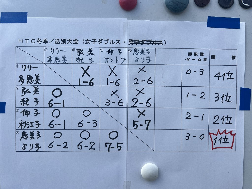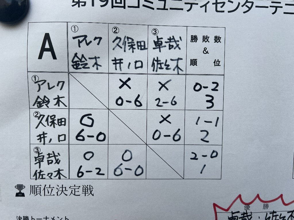 私は斎藤さんと組んで1勝2敗で3チームが並びましたが、