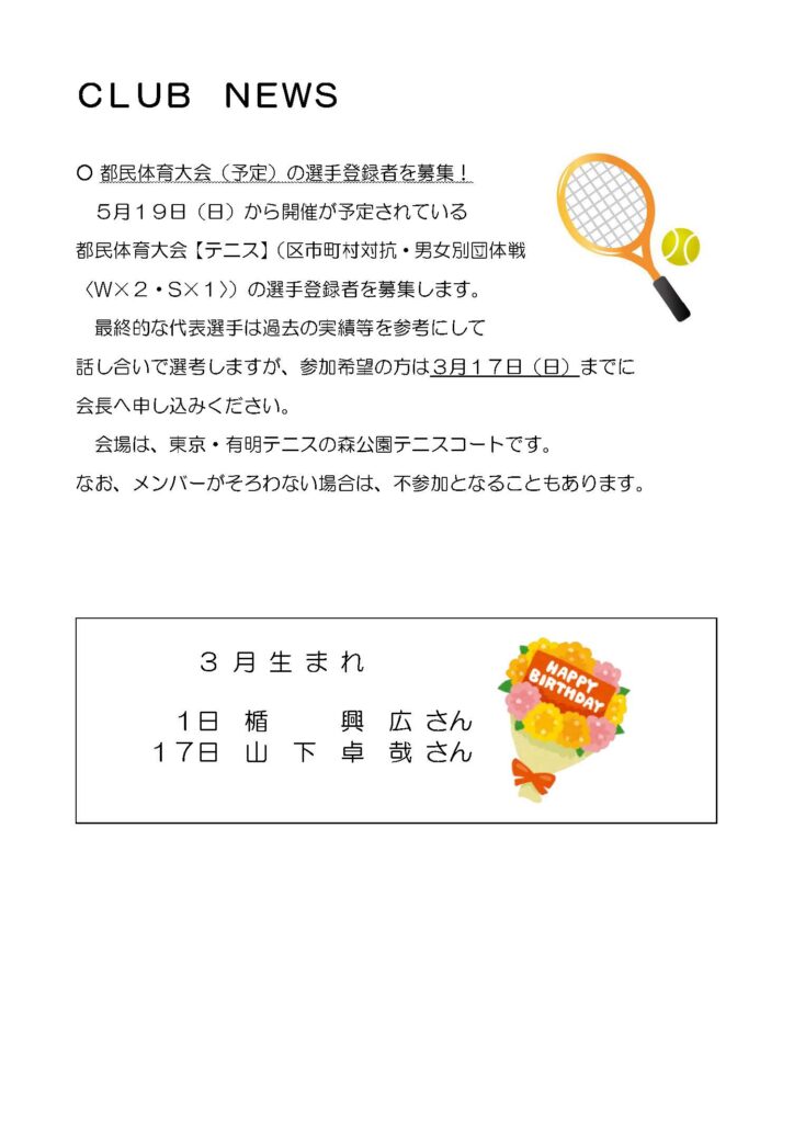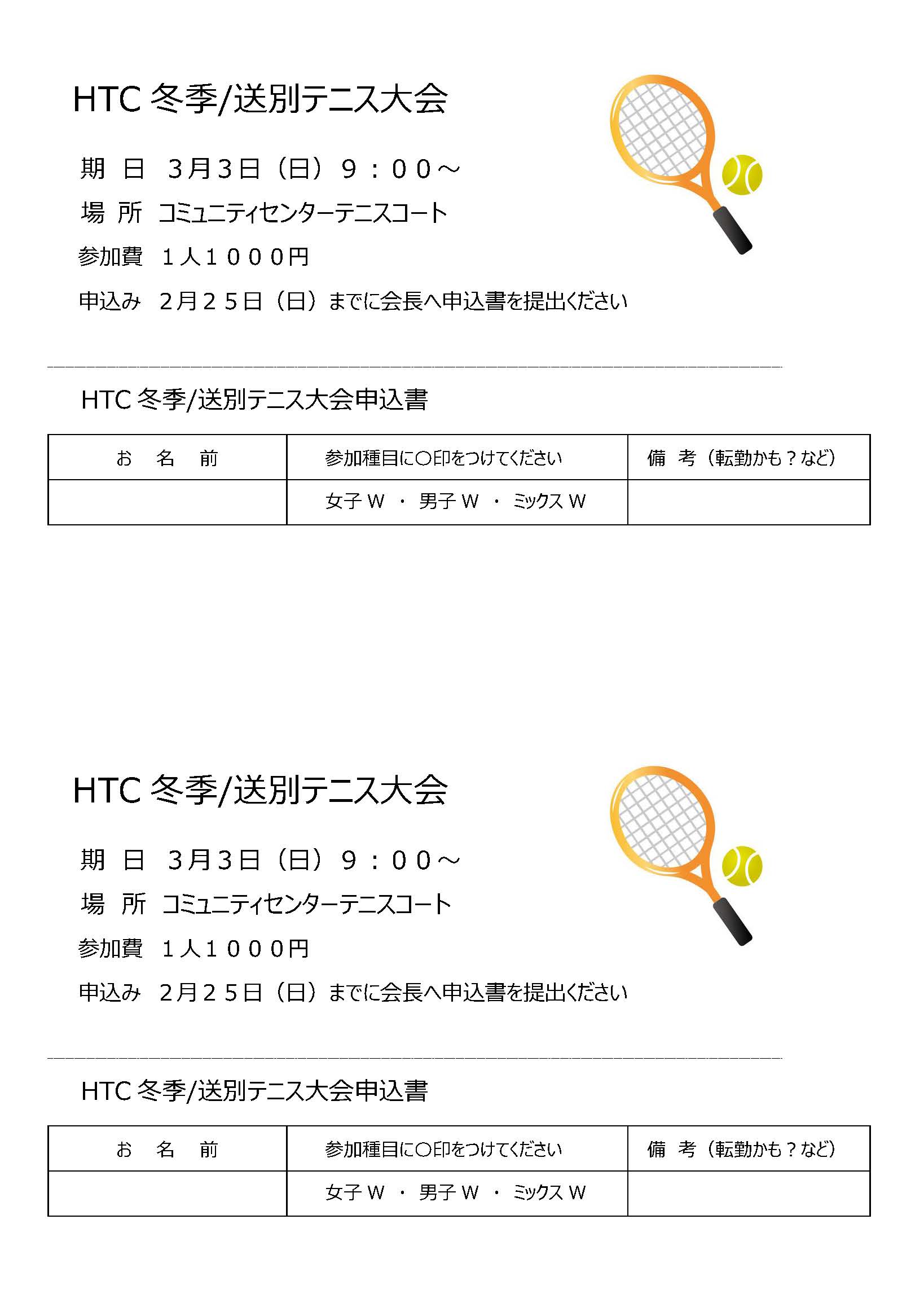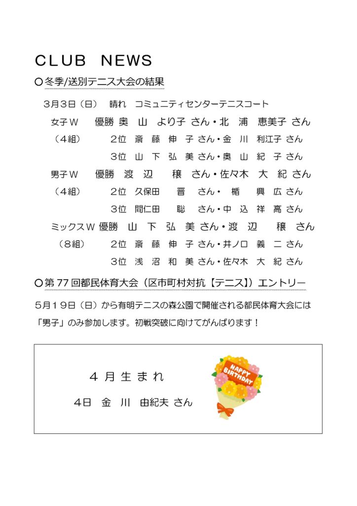 3月3日に冬季送別テニス大会が開催されました。
