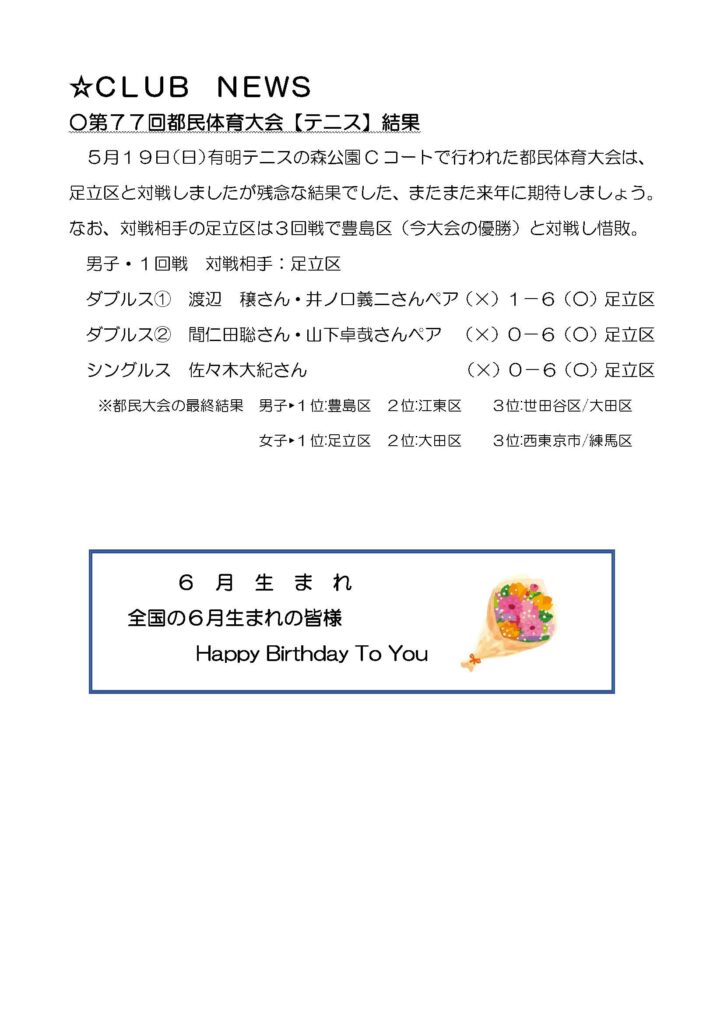 個人的には 仕事の関係で、あまりテニスはできませんでしたが
