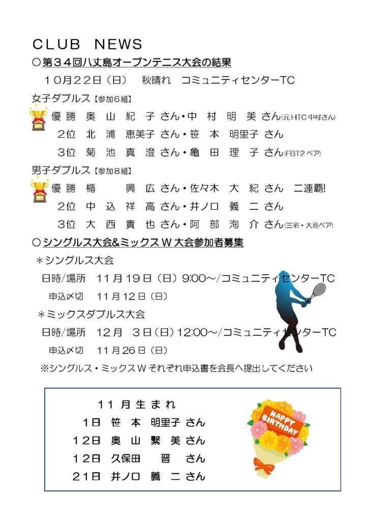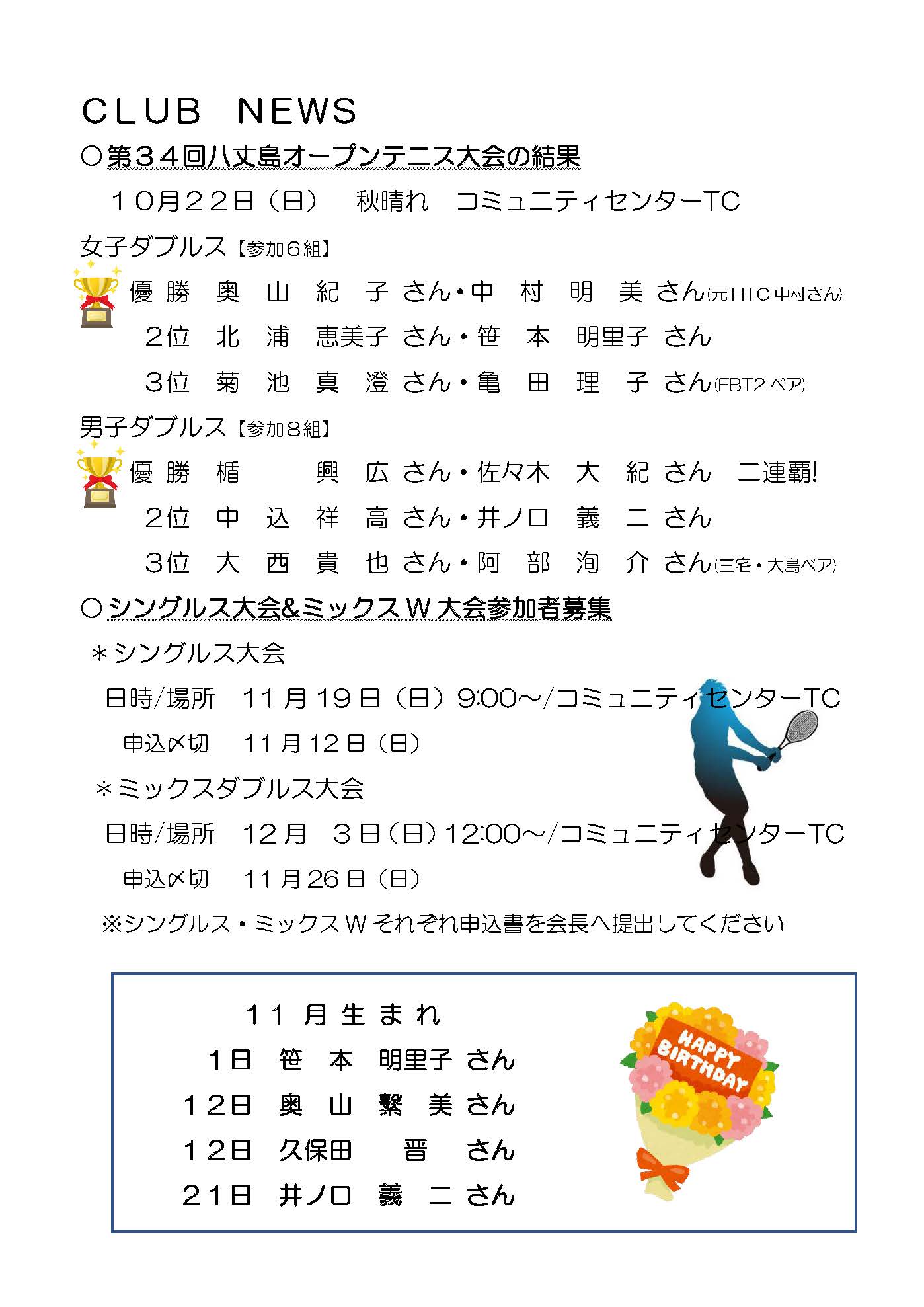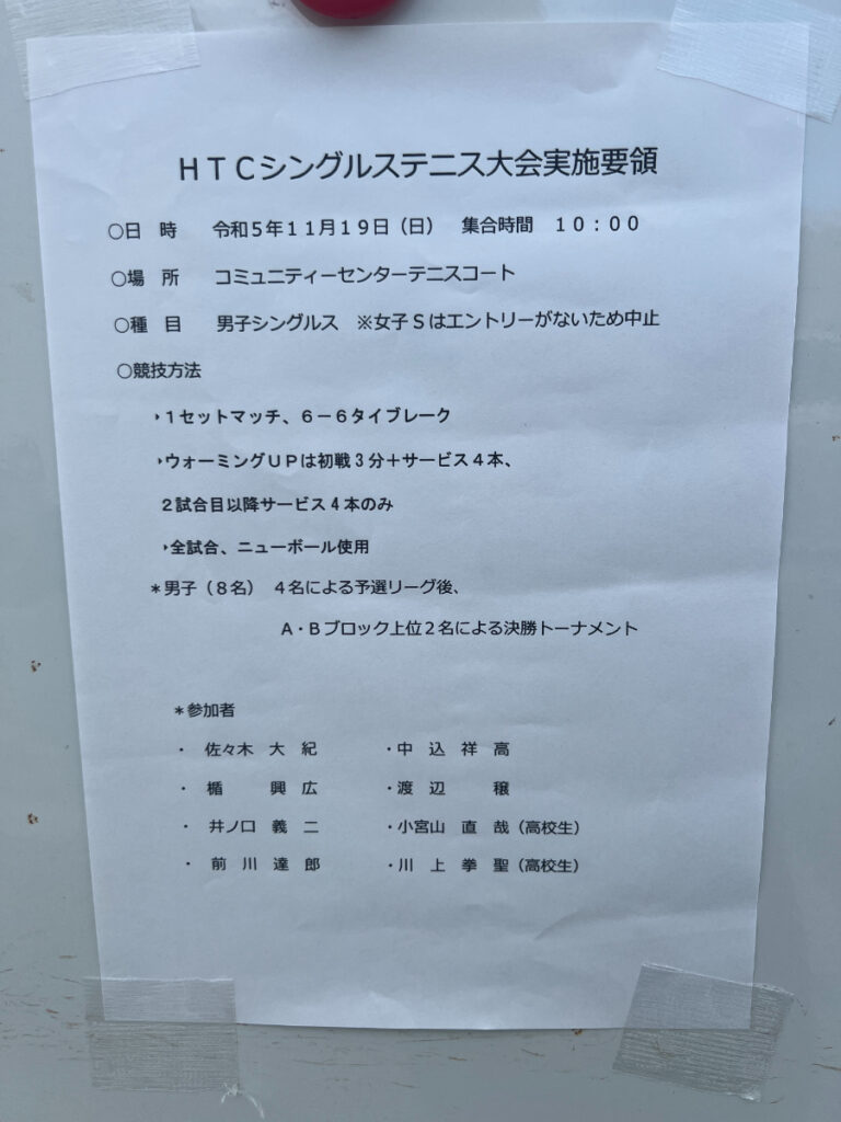 11/19に シングルス大会が開催されました。