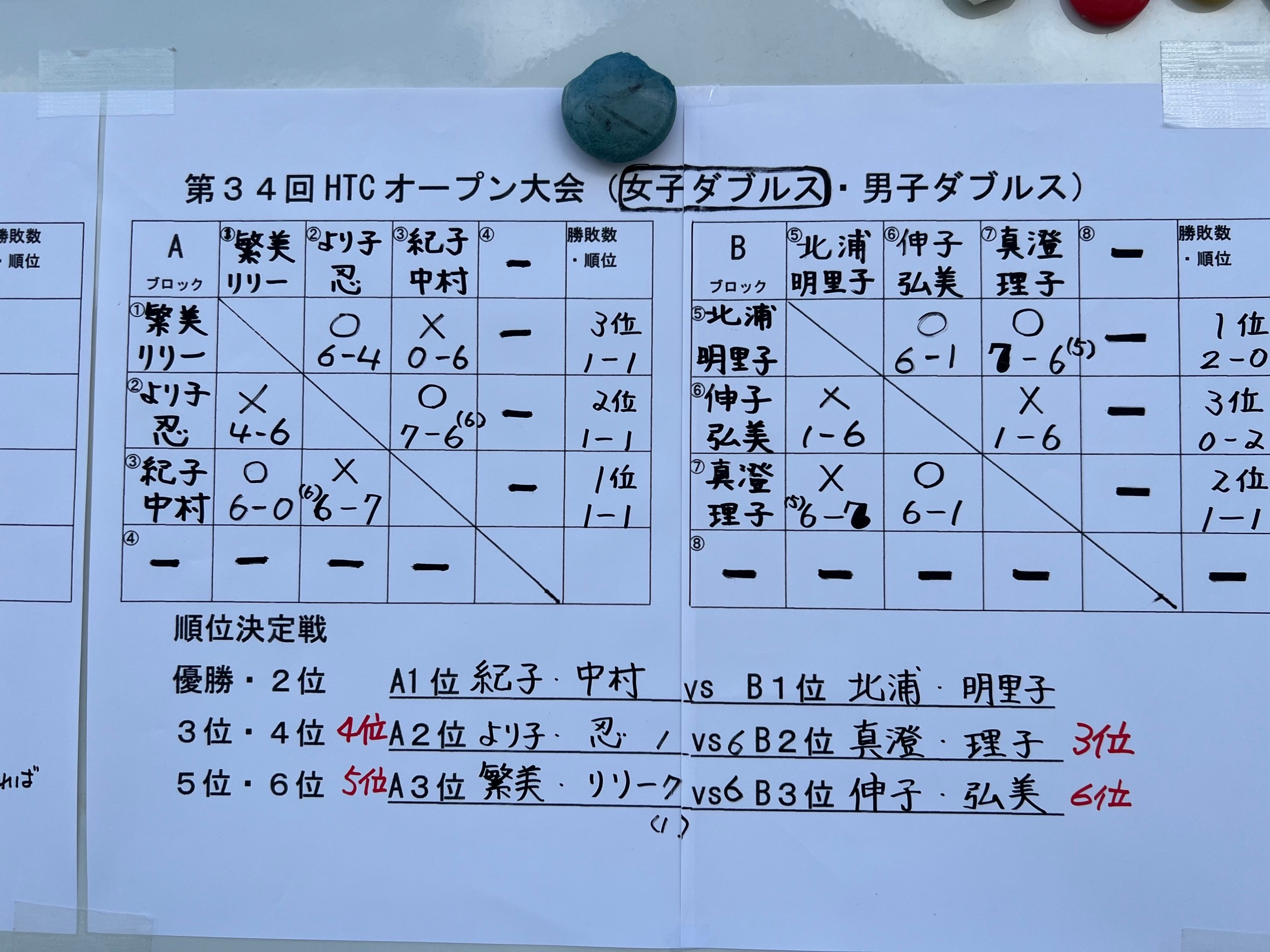 女子ダブルス【参加6組】