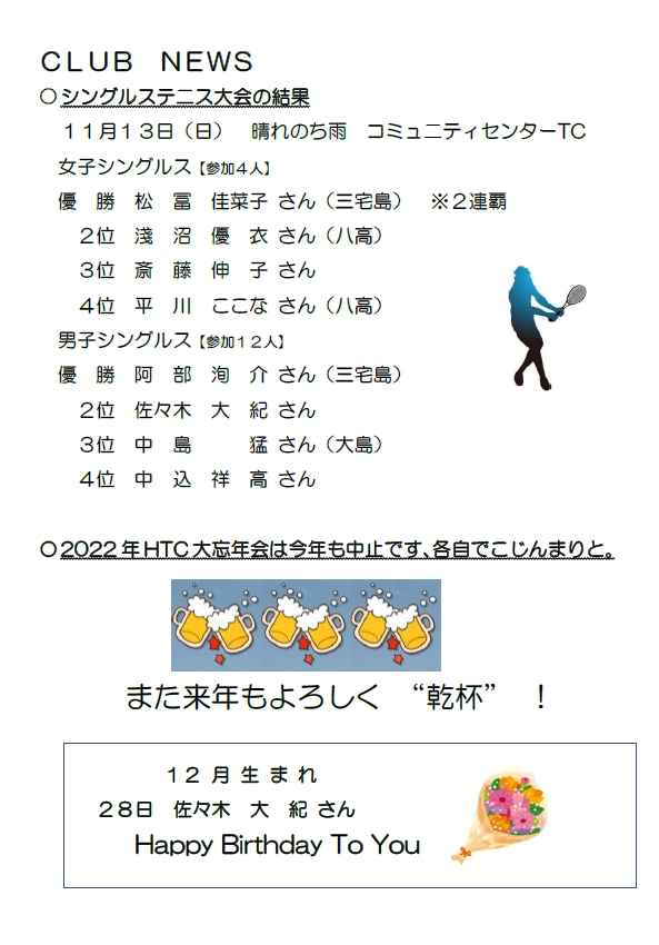 アップするのが遅くなりましたが、冬季送別大会が