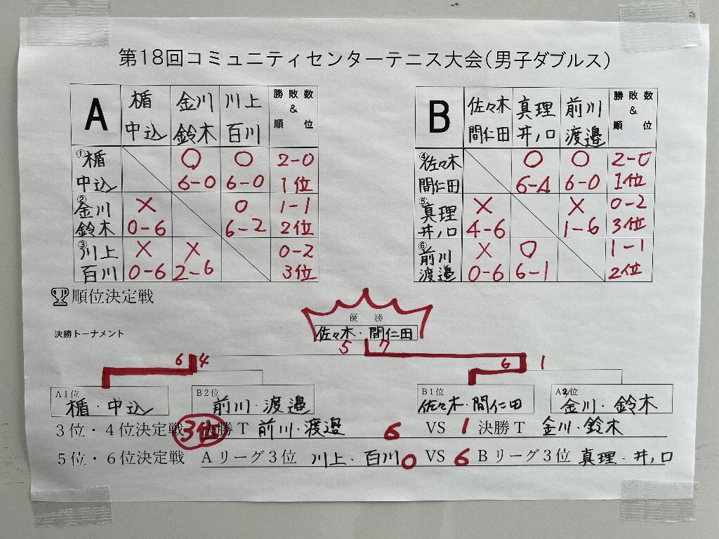 優勝:金川由紀夫さん・佐々木大紀さん(4組)