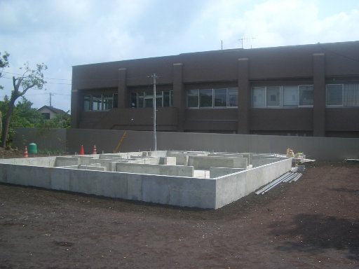 井ノ口邸基礎コンクリート打設状況 5/26 井ノ口邸基礎コンクリート打設状況。晴天のなか、良いコンクリート打ちが出来ました。 井ノ口邸の基礎も結城邸の基礎と同様に基礎立上りの外周部を耐圧盤と一緒に打設したので、かなり強固な基礎になっています。