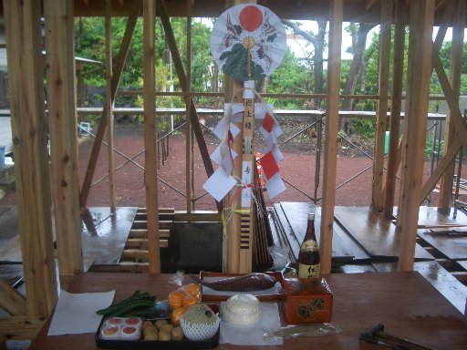 井ノ口邸上棟式 6/19(日) 今日は井ノ口邸の上棟式です。大安の日曜(父の日でもあります) ということで他にも2件ほどあるようです。 11時から行いました。今週は梅雨らしく、ずっと雨模様。 井ノ口家様、関係者の皆様、お疲れ様でした。 9/19日の竣工までよろしくお願いします。