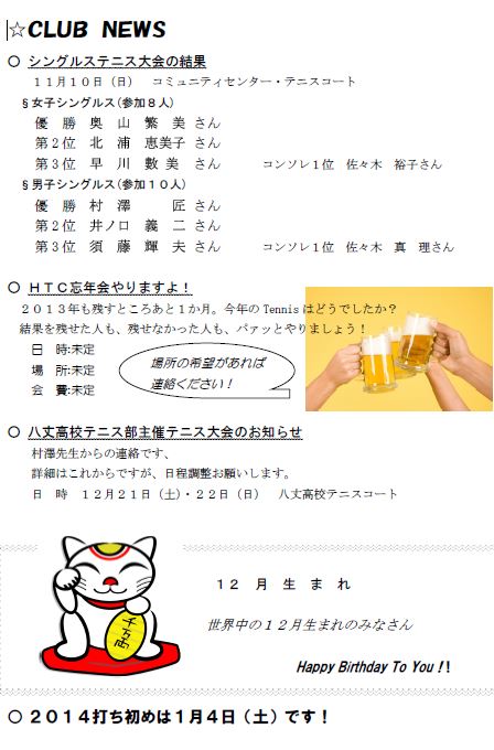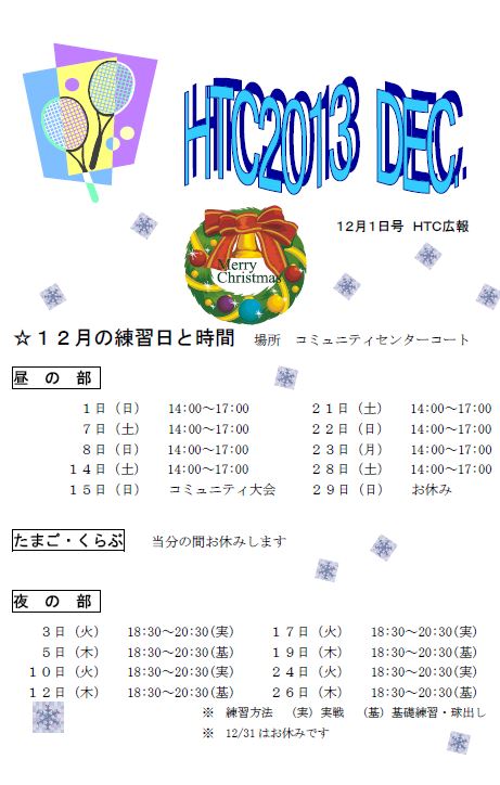 今年も残り、3週間ちょっと。 皆さん、今年はよい年だったでしょうか? HTCの今年 最後の会報をアップします。