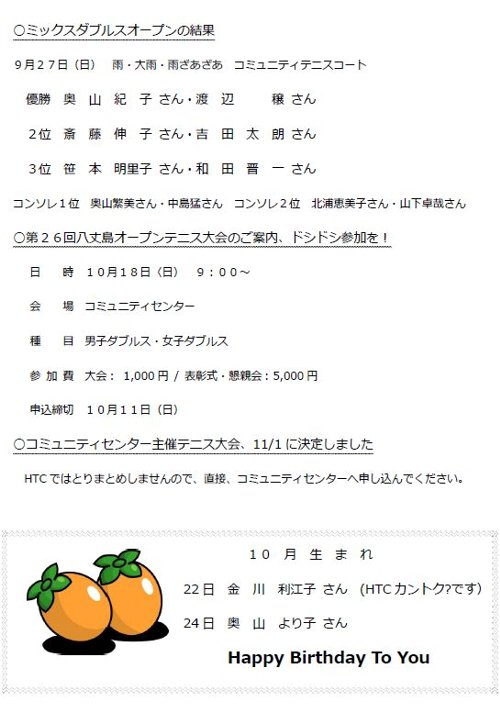 HTCの2015年10月会報です。