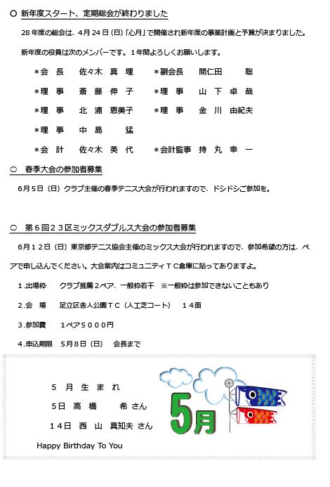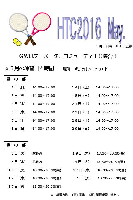 2016年5月のHTCの会報です。 HTC2016.05