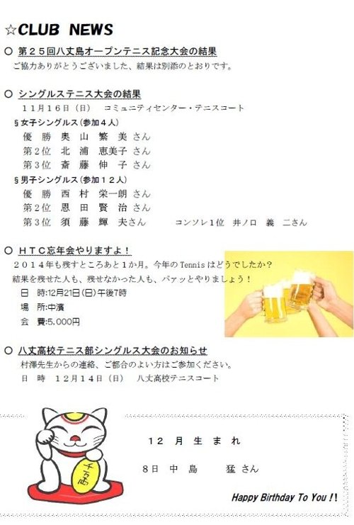 今年も 残り3週間となりました。 テニスファンとしては、錦織圭 くんの活躍で とても楽しめた1年となりましたね!!