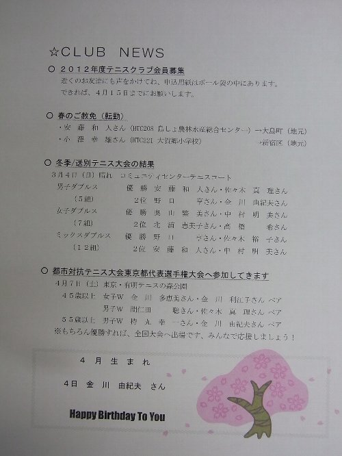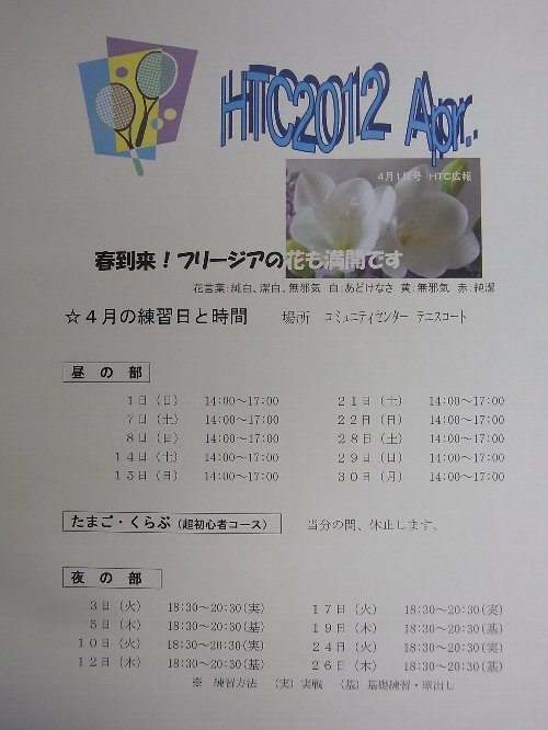 今日から、新年度の本格的なはじまりです。 今年度、最初のHTCの会報です。 新メンバーも募集しています。
