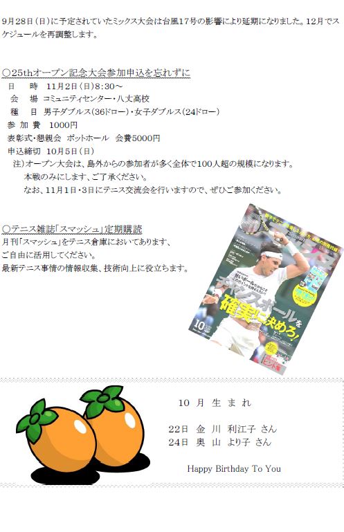 9月28日に予定されていたミックスダブルス大会は