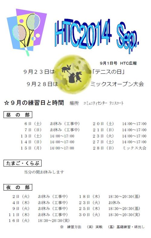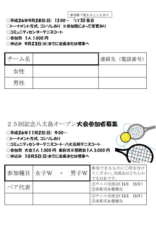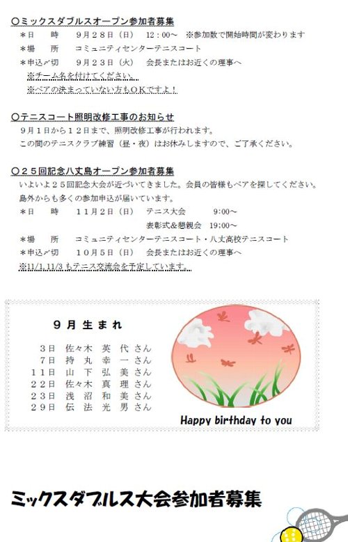 遅くなりましたが、9月の会報です。 今月末はミックスダブルス大会。 11月は島外からも多数参加予定のオープン大会があります。