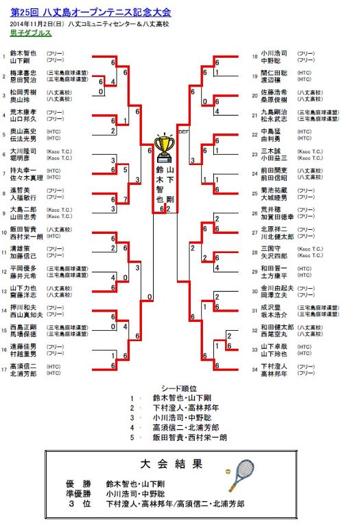 男子の優勝は第1シードの鈴木智也・山下剛 組が見事優勝。
