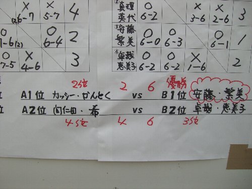 2位の山下・北浦組と対戦したが、4-6でまけて、4位だった。