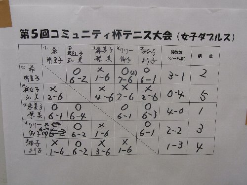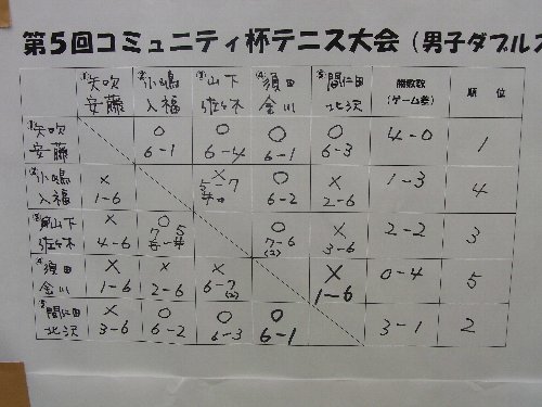 テニス コミュニティ杯 4月19日、絶好のテニス日和の中、 八丈町のミュニティ杯が行われました。 僕は、今回も、北沢さんと組んで、出場。 またもや、矢吹組には勝てず、2位でした。 残念。 男子ダブルス 1位 矢吹・安藤 組 2位 北沢・間仁田 組 3位 佐々木・山下組 女子ダブルス 1位 奥山・北浦 組 2位 高橋・笹本 組 3位 りりー・斉藤 組 今回、高速連写ができるカメラで安藤さんのサーブを撮影しました。