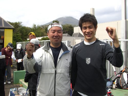 来島した東京電力テニス部の軸丸真志講師(’04 全日本学生選手権 単 優勝)と