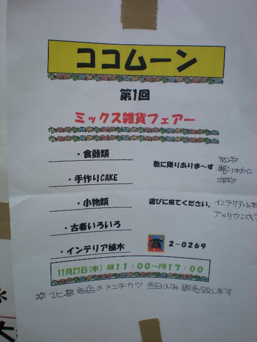 ミックス雑貨フェアーが催されます。あのおいしい、メンチカツも販売予定。