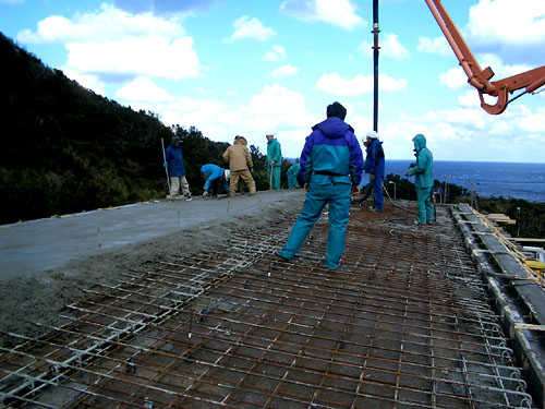 勝電技研のご協力により、きょうから私もブログを始めることになりました。 最初の投稿はコンカラー様のゲストハウスの打ち込み風景です。 寒風の中、無事 終了しました。